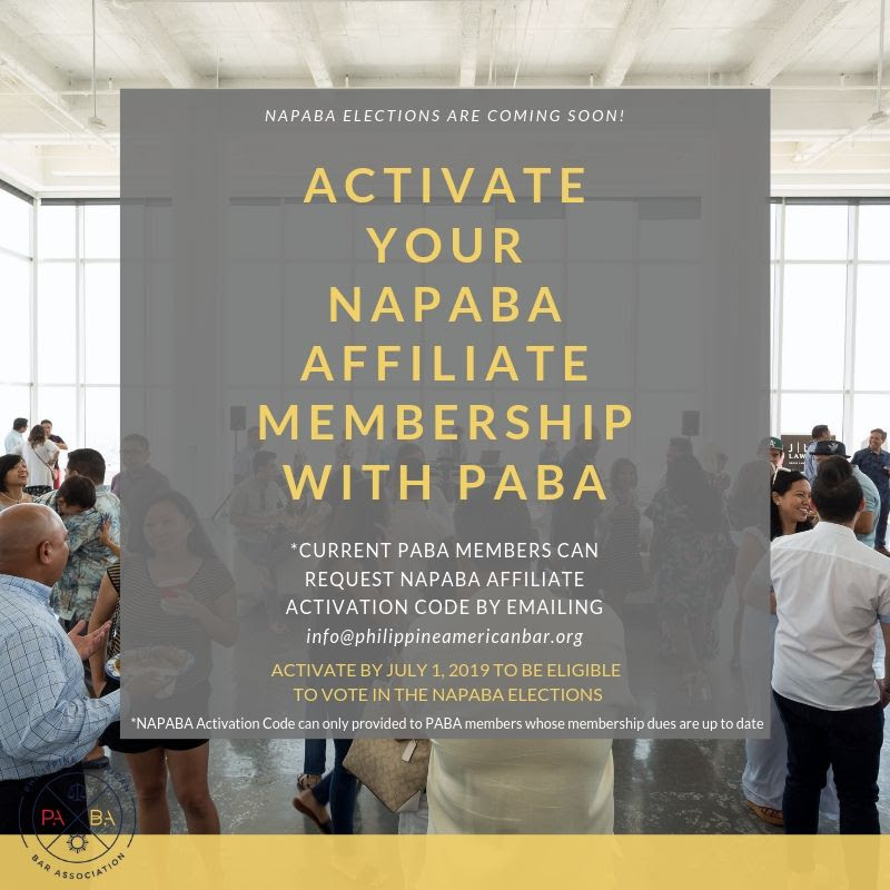 Elections for the National Asian Pacific American Bar Association (NAPABA) are coming up and in order to be eligible to vote, you must activate/renew your NAPABA Affiliate Membership by July 1, 2019.